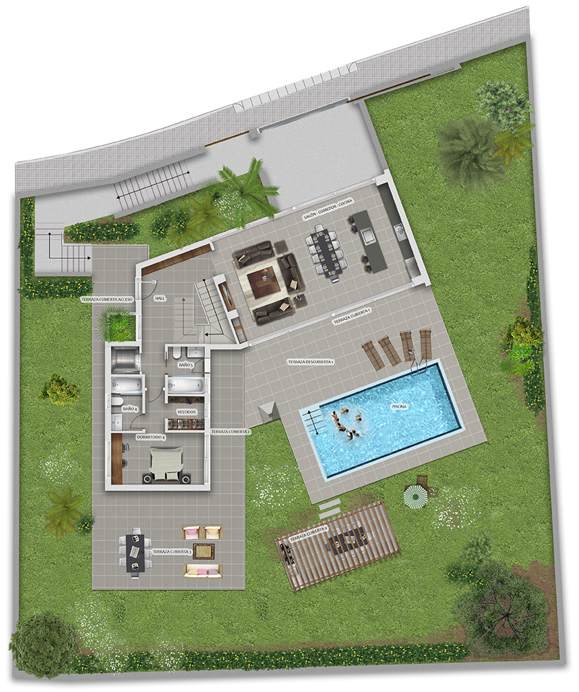 Recreación cinematográfica: Transformamos tus ideas en una presentación visual impresionante, casi real, que permite a los clientes sumergirse en tu proyecto antes de su ejecución.
